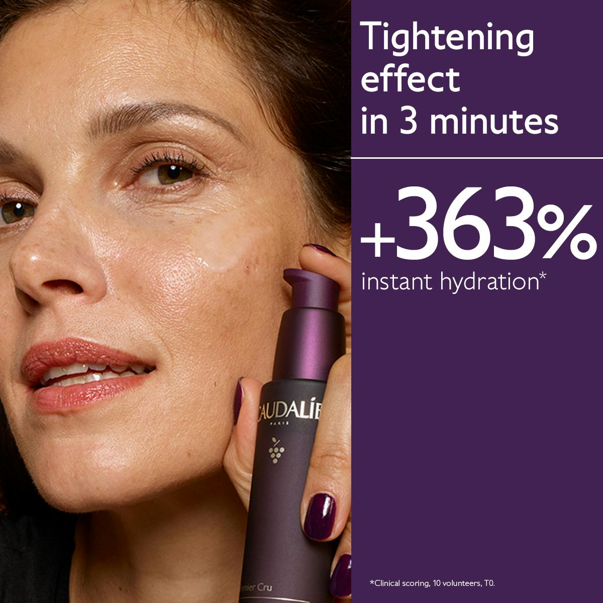 The Premier Cru Serum is designed to deliver deep hydration to the skin, featuring a unique blend of hyaluronic acids with both high and low molecular weights.