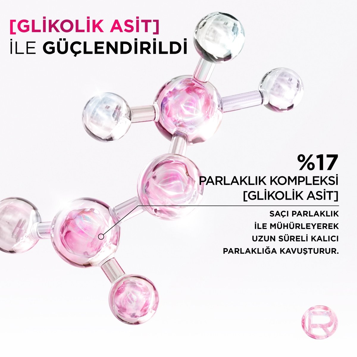 Ürün Özellikleri: Pürüzsüz yüzeyi nedeniyle parlak saç sağlıklı görünen saçtır. Işığı mükemmel şekilde yansıtır. Saç yıpranmaları saça pürüzlü bir görünüm verir ve böylece saç ışığı yansıtamadığı için cansız ve mat bir görünüm kazanır. [Glikolik Asit] ile zenginleştirilmiş formülü saçı uzun süre kalıcı parlaklık ile mühürler.
